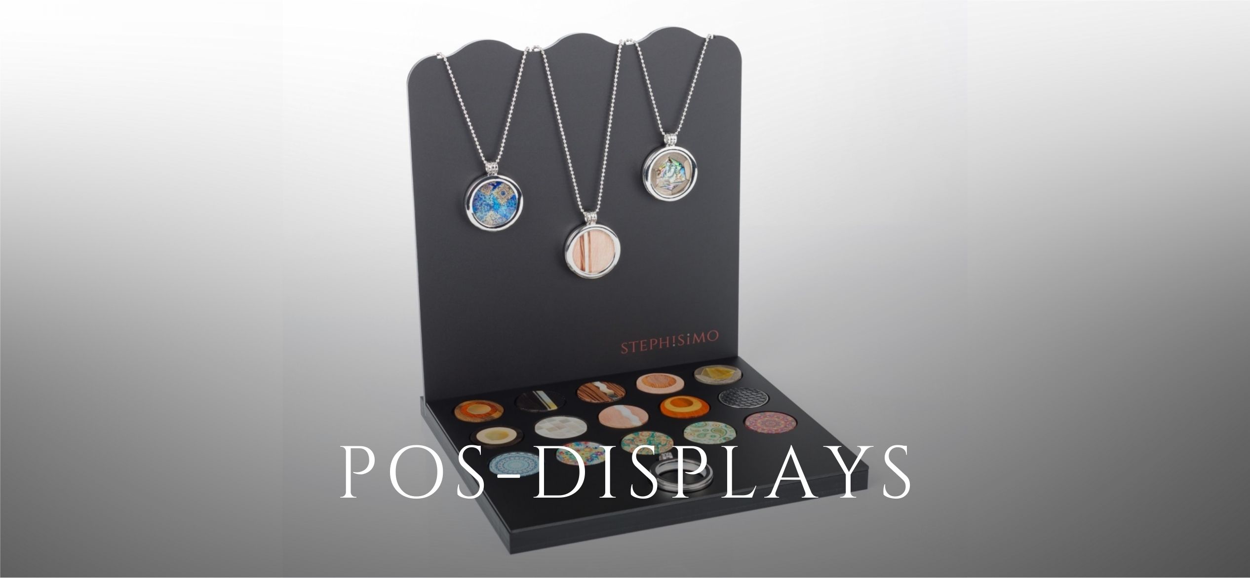 Mit unseren Schmuckständern und Displays präsentieren Sie den hochwertigen Modeschmuck von Stephisimo optimal in Ihrem Geschäft. Unser Sortiment umfasst Displays für Ketten, Ohrringe und Armbänder in unterschiedlichen Designs und Farben – von elegant-schlicht bis verspielt und auffällig.