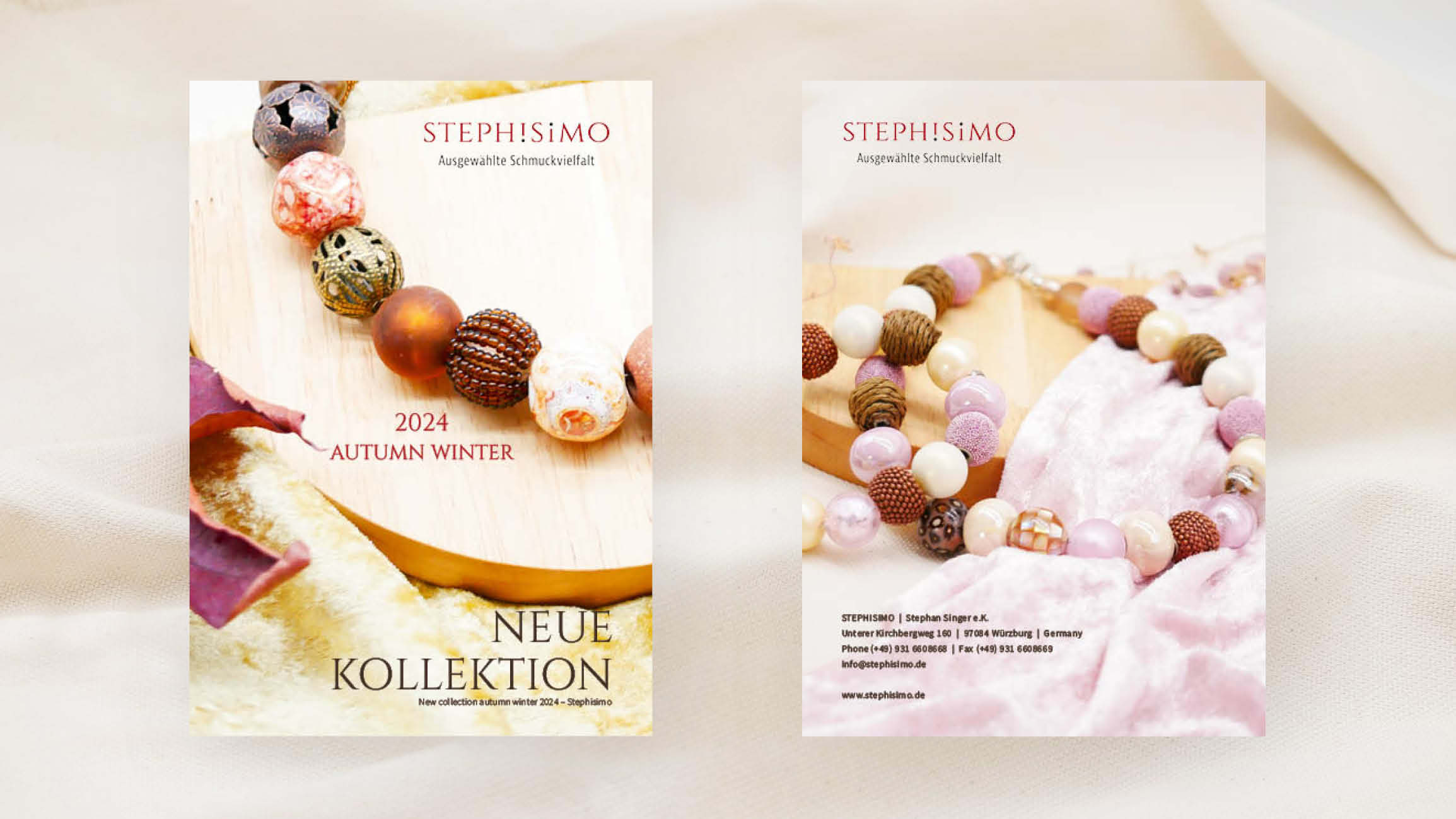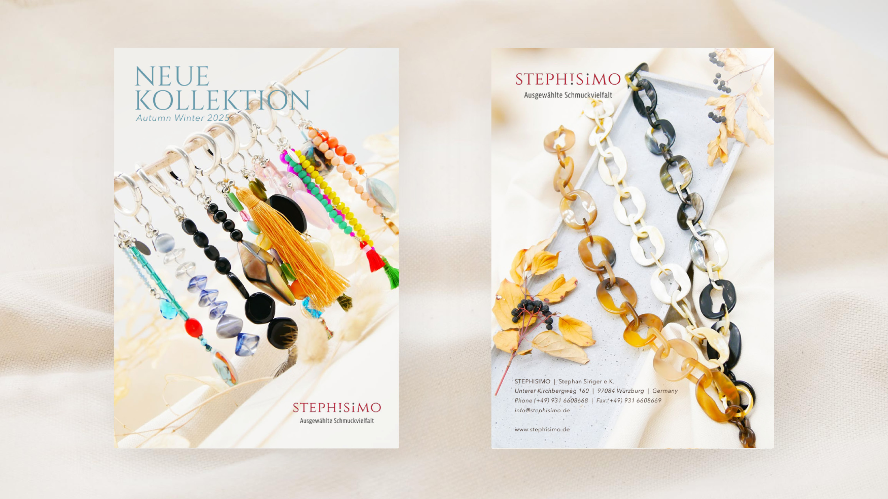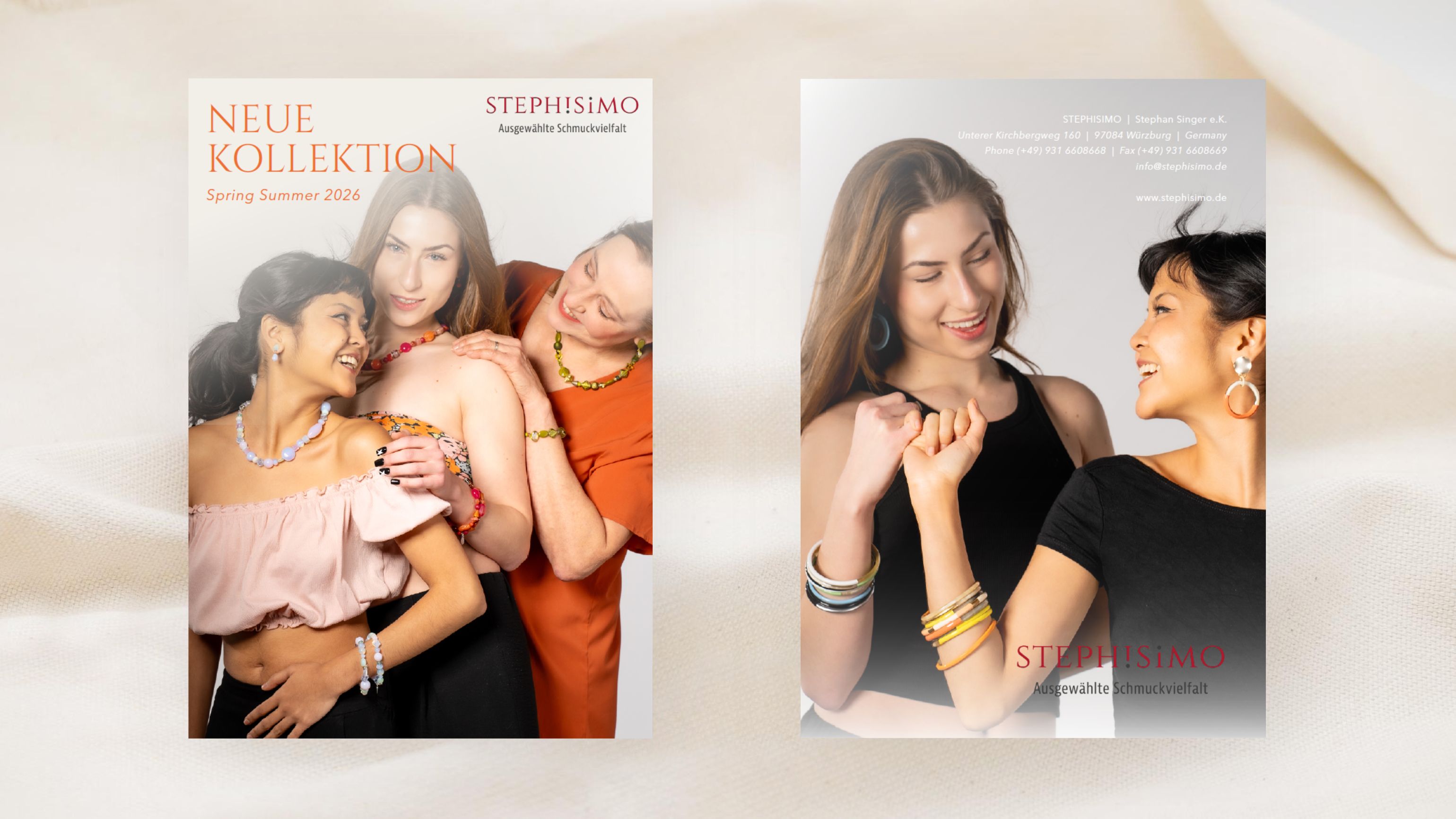 Zweimal im Jahr bringen wir bei Stephisimo eine neue Kollektion heraus. Einmal eine Herbst/Winter Kollektion und dann im Frühjahr eine Frühling/Sommer Kollektion. Hier finden Sie alle unsere Produkte aus unseren Katalogen zum stöbern. Die neuesten Produkte unserer aktuellen Kollektion finden Sie auch hier im Shop.